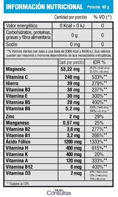 Sin embargo, para una salud óptima, muchos nutricionistas consideran que se necesita una mayor cantidad de diversos nutrientes. Por ejemplo, el valor diario de la vitamina C es de 60 mg, pero su recomendación suele ser de al menos 500 mg. Para la vitamina B1, el valor diario es de 1.7 mg, pero para una salud óptima, por lo general se recomienda al menos 25 mg. Un asterisco junto al porcentaje significa que la FDA no ha establecido un valor diario para ese nutriente. Si se desea evitar deficiencias nutricionales, los beneficios de los multivitamínicos se obtienen con una dosis baja de aproximadamente el 100% de los valores diarios. Por otro lado, si el objetivo es una salud óptima, se puede elegir una dosis más alta.